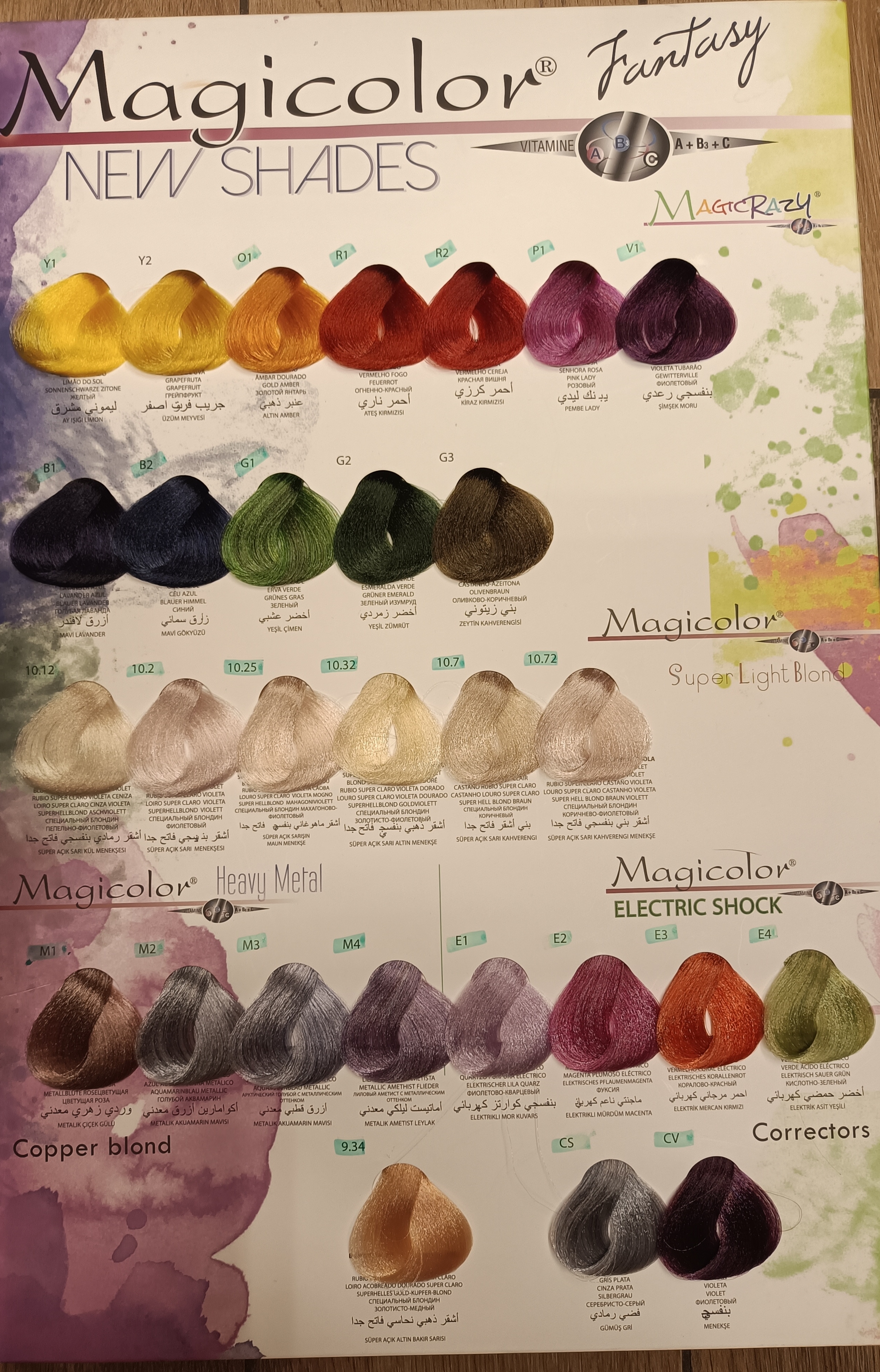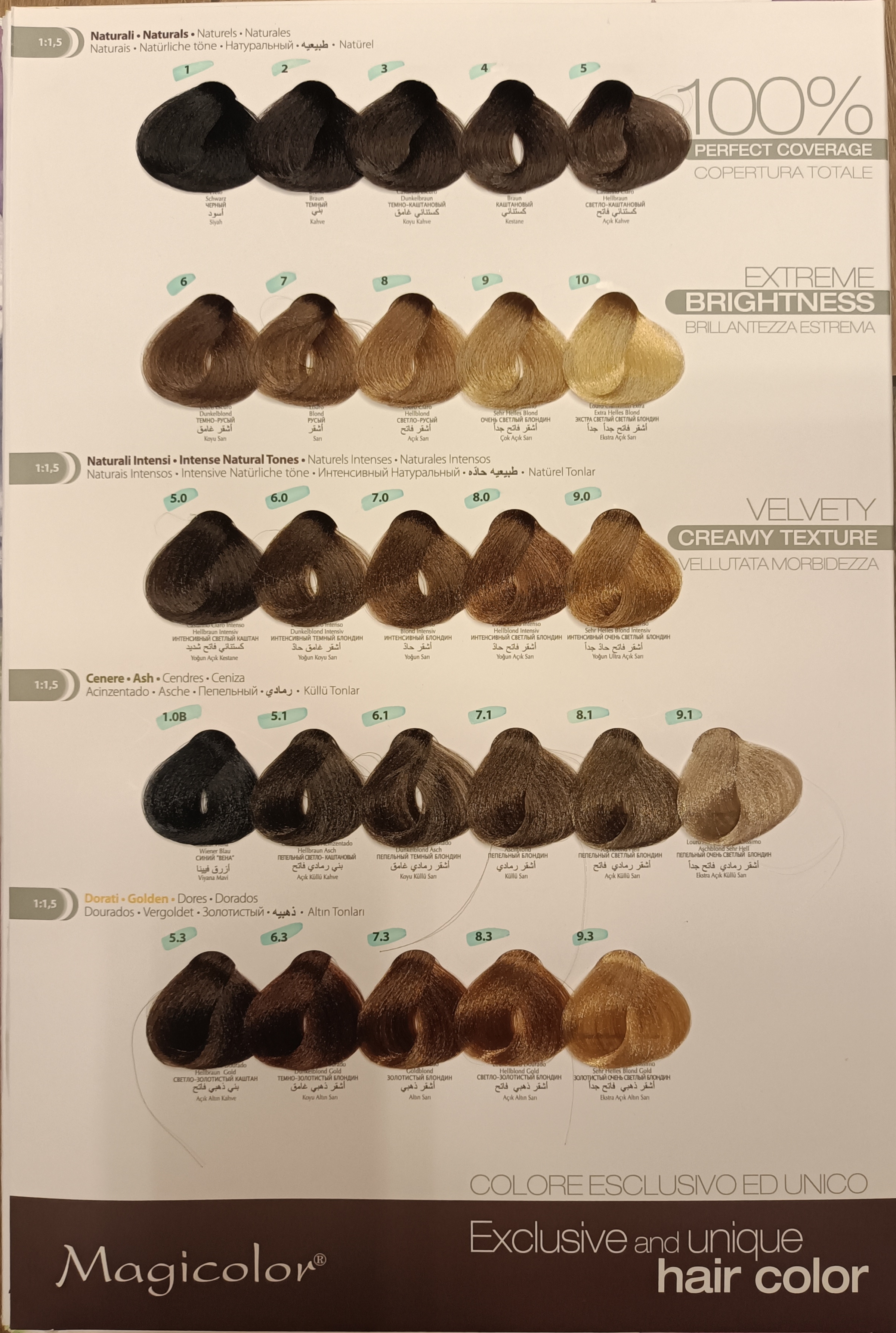 In una bacinella, miscelare 1 parte Magicolor + 1,5 parti ossidante (es. 50ml Magicolor + 75ml ossidante) fino a ottenere una crema omogenea.