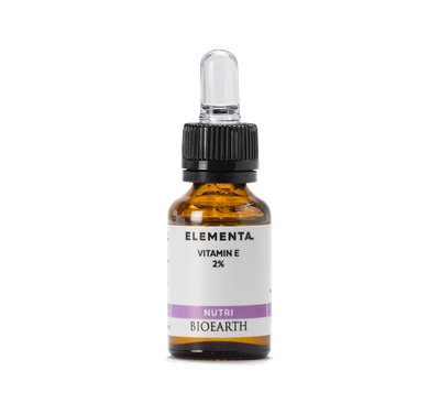 Bioearth Elemental Soluzione concentrata di Vitamina E 2% (Tocoferolo) in una base attiva con olio di Argan biologico.