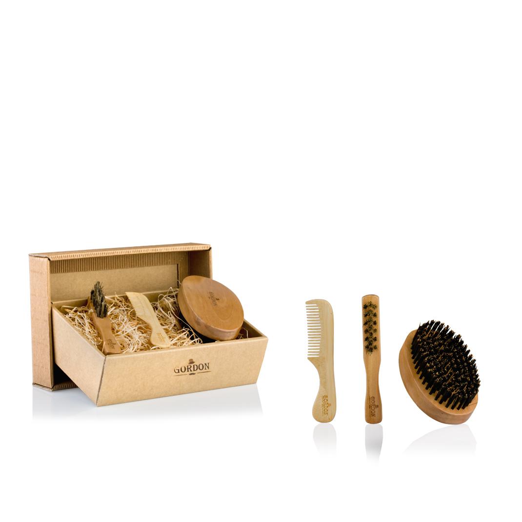 Che sia Natale, o un compleanno, o semplicemente un pensiero per un amico, il Kit Gordon barba e baffi è l’idea regalo perfetta per gli amanti della cura della barba. Contiene una spazzola da barba per il grooming e uno spazzolino per i baffi, entrambi in pura setola di cinghiale, ed un pettine per la cura dei baffi.