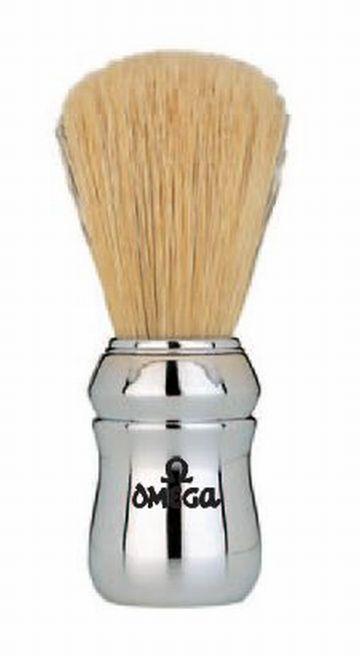 Pennello da barba professionale Silver Omega in setola naturale colore argento.