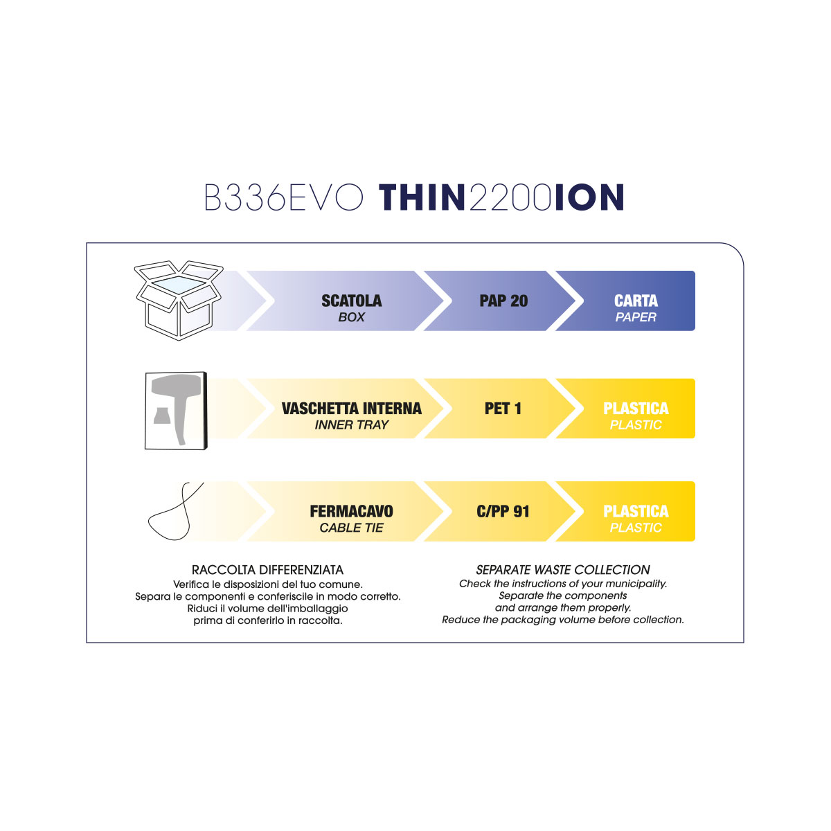 Il nuovo asciugacapelli professionale Thin2200 Ion è un’evoluzione del precedente. Il motore adesso è molto più potente e performante, per un’asciugatura più veloce e una piega più incisiva. Con il nuovo asciugacapelli Thin2200 Ion è facile ottenere un'asciugatura professionale e, allo stesso tempo, capelli soffici e brillanti. I capelli risulteranno anche più sani grazie alla Natural Ion Therapy che lo contraddistingue. Il design è ergonomico, bilanciato, ed elegante grazie alle finiture turchesi a contrasto con un bellissimo color navy violet.
